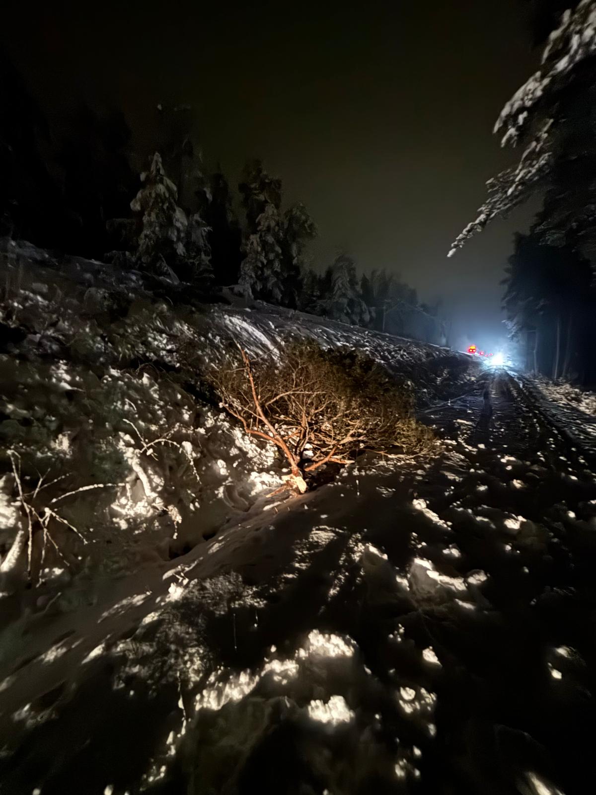Bei unserem Eintreffen war der Baum durch die Kollision nicht mehr direkt auf den Gleisen, versperrte jedoch den angrenzenden Bereich sowie die Zufahrt für die Einsatzkräfte. Mittels Motorsäge, Äxten und Leinenbeutel wurde der Baum entfernt. Gegen 03:00 Uhr war dieser beseitigt.