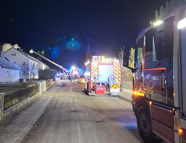 Am zweiten Weihnachtsfeiertag wurden wir gegen 19:40 Uhr zu einem Wohnhausbrand in Wicklesgreuth alarmiert. Bei Ankunft schlugen die Flammen bereits aus den Erdgeschossfenstern. Der Bewohner des Hauses konnte nicht mehr gerettet werden. Die Löscharbeiten gestalteten sich schwierig, da das Feuer sich über das 1. Obergeschoss auch bereits in das Dach ausbreitete.